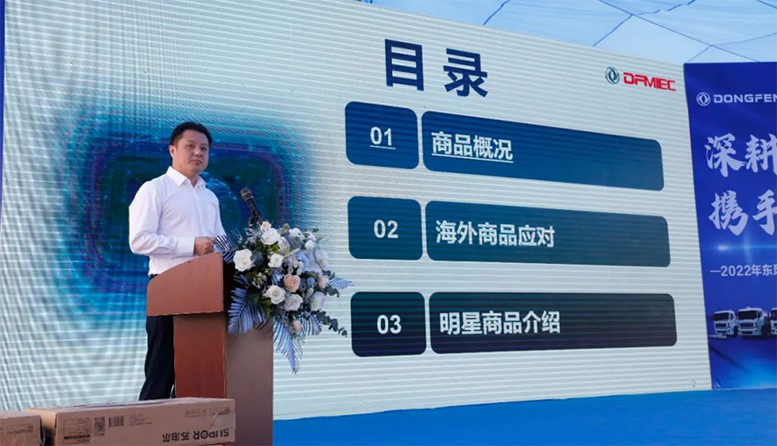 楊濤助理表示,中國東風(fēng)汽車工業(yè)出口有限公司是東風(fēng)汽車集團(tuán)有限公司的二級(jí)單位,是一家專業(yè)從事東風(fēng)集團(tuán)汽車出口、全球供應(yīng)鏈服務(wù)、工業(yè)投資的外貿(mào)公司。2021年東風(fēng)的海外事業(yè)取得了亮眼的成績,海外出口車輛(含成套散件)15.4萬輛,同比增長了1.2倍,創(chuàng)造了歷史最高紀(jì)錄;2022年將沖刺挑戰(zhàn)20萬輛的銷售目標(biāo),借此推薦會(huì)的機(jī)遇,希望程力和隨州的銷售經(jīng)理,能夠搭上東風(fēng)海外事業(yè)發(fā)展的快速列車,共創(chuàng)新業(yè)績新輝煌。