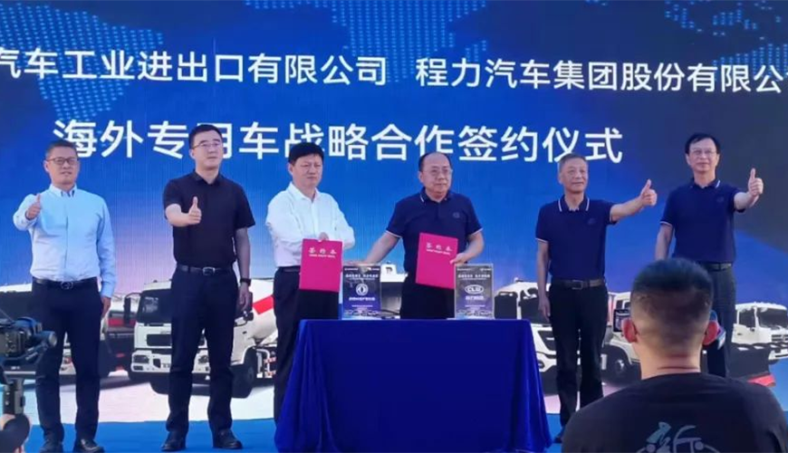 在這次線下大型東風(fēng)商用車海外市場新產(chǎn)品推薦會(huì)上,中國東風(fēng)汽車工業(yè)進(jìn)出口有限公司與程力汽車集團(tuán)股份有限公司聯(lián)合舉行了海外專用車戰(zhàn)略合作簽約儀式,雙方高層領(lǐng)導(dǎo)簽約后合影紀(jì)念。