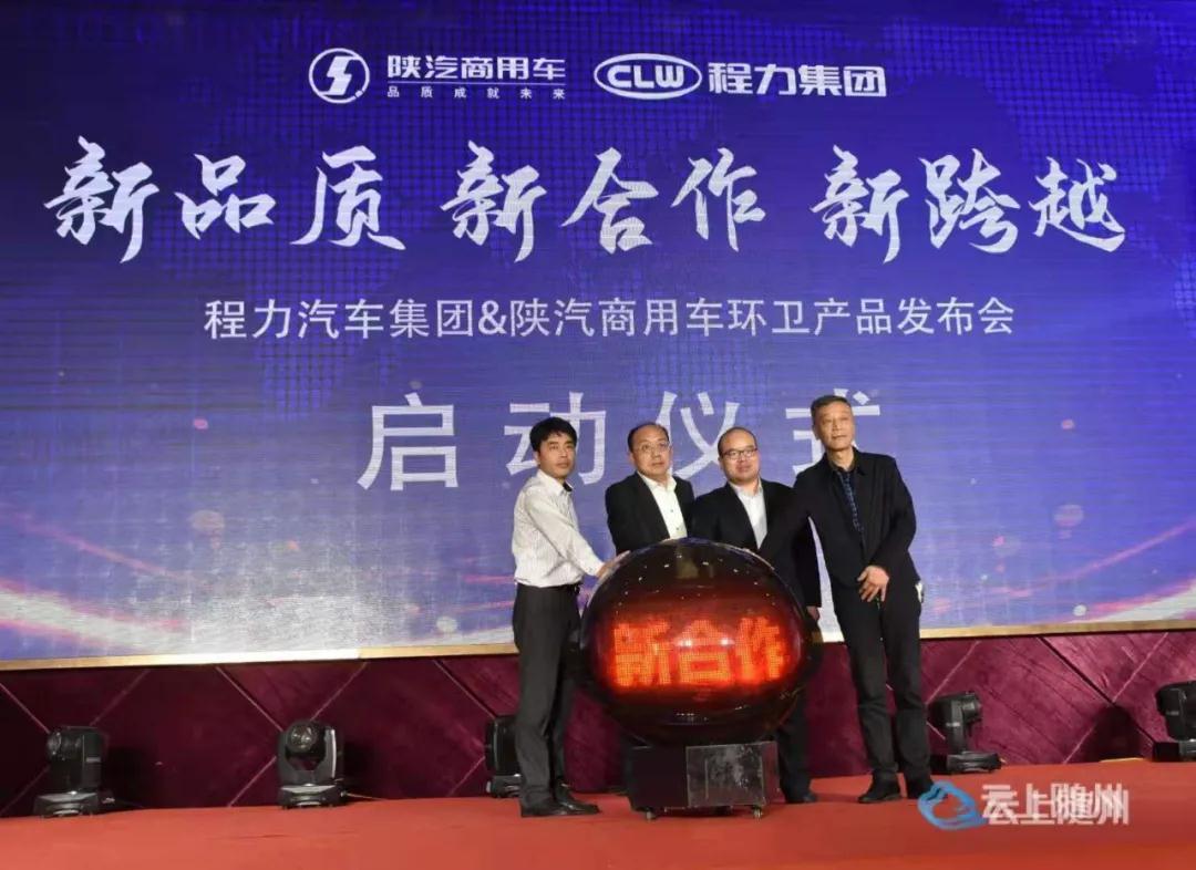 程力汽車集團(tuán)黨委副書記、集團(tuán)公司常務(wù)副總經(jīng)經(jīng)理、程力(湖北)底盤供銷公司董事長程國強(qiáng),陜汽商用車銷售公司副總經(jīng)理魏宇龍,程力集團(tuán)副總經(jīng)理、底盤供銷公司總經(jīng)理劉峰,陜汽商用車銷售公司專用車部部長穆瑋周共同啟動水晶球,宣布程力集團(tuán)陜汽商用車環(huán)衛(wèi)系列產(chǎn)品正式發(fā)布。