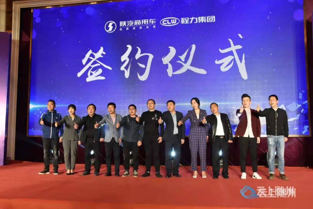 程力陜汽商用車底盤事業(yè)部負(fù)責(zé)人高波宣布了新產(chǎn)品價(jià)格和團(tuán)購政策,與合作代表進(jìn)行了簽約儀式,并合影紀(jì)念。