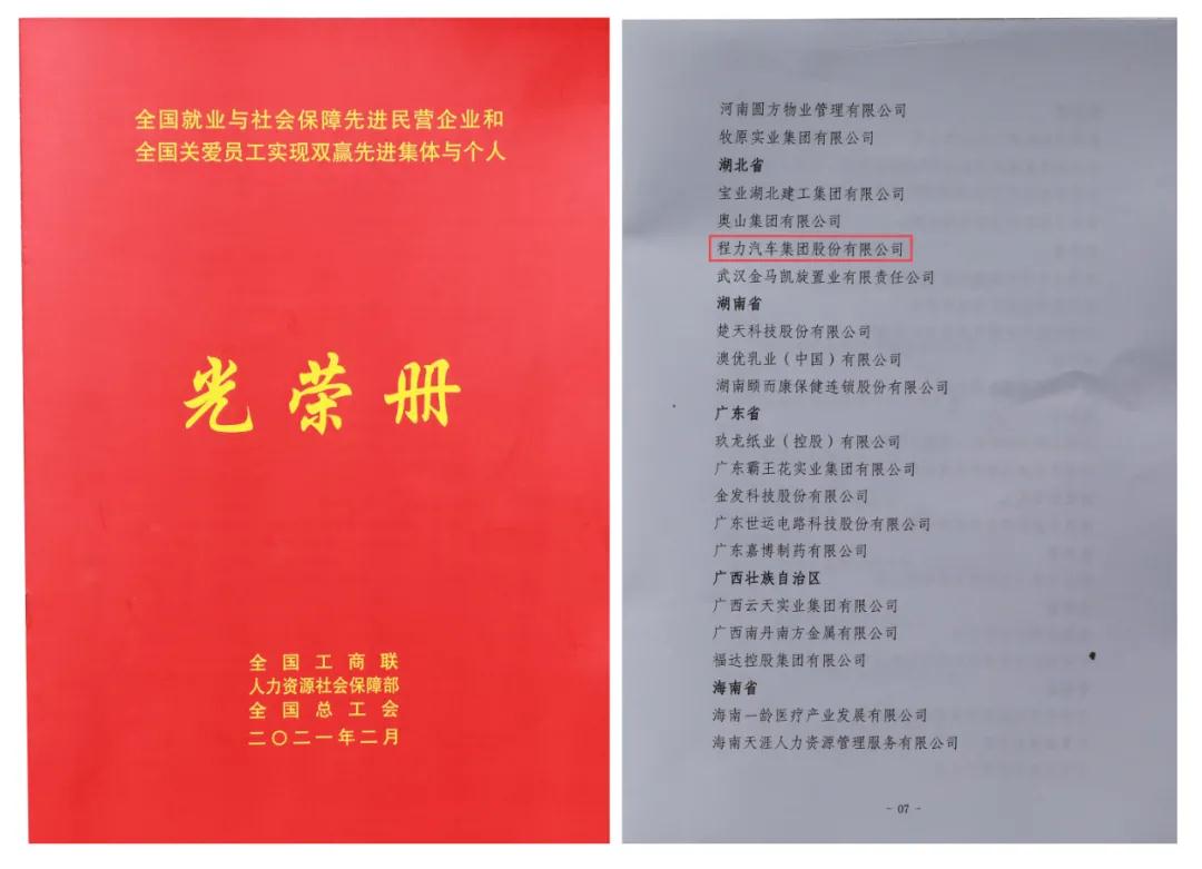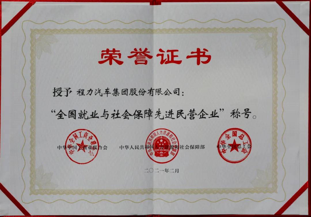 3月2日,程力汽車集團股份有限公司收到國家人力資源和社會保障部、中華全國工商業(yè)聯合會、中華全國總工會聯合頒發(fā)的“全國就業(yè)與社會保障先進民營企業(yè)”榮譽證書及牌匾,這是程力汽車集團股份有限公司在2021年初被授予的開門紅全國性殊榮,也是程力集團繼2020年連續(xù)三次受到全國性榮譽表彰。