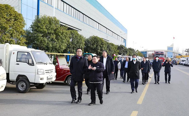 王志才總經(jīng)理一行領(lǐng)導(dǎo)及負(fù)責(zé)人,不畏凜冬寒冷,先后步行參觀程力(曾都)汽車工業(yè)園、程力南郊汽車裝備制造工業(yè)園兩大基地。來賓們看產(chǎn)品、下車間、問工藝,無一不細致入微,調(diào)研考察工作扎實認(rèn)真高效。