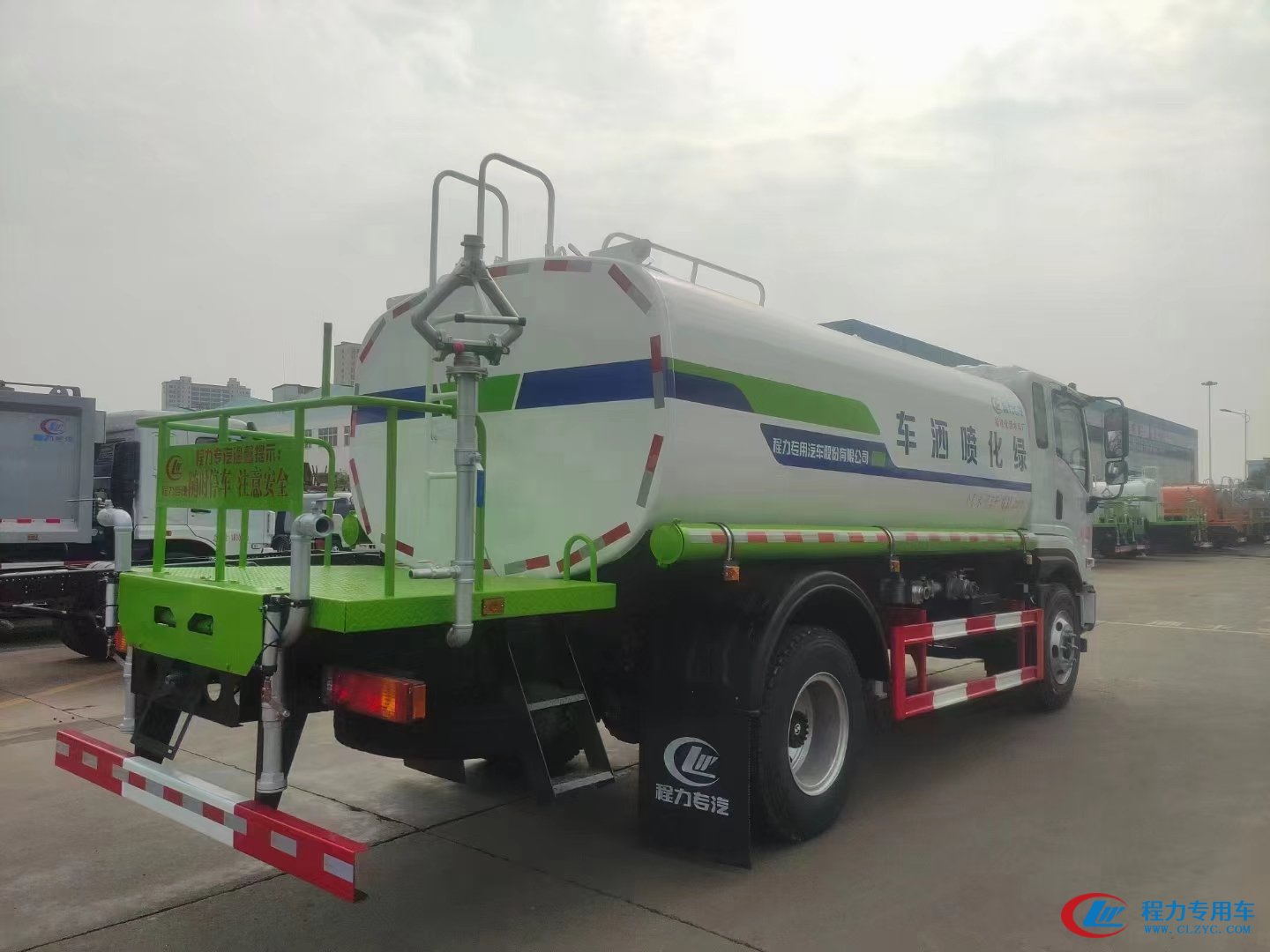 | 上裝配置 | 上裝武鋼優(yōu)質(zhì)碳鋼板,容積12立方,厚度4mm,封頭5mm,前后封頭機(jī)器人自動(dòng)焊,內(nèi)設(shè)隔浪板,帶液位計(jì), 配程力原廠大功率灑水泵,帶駕駛室電控操作,前沖后灑4個(gè)新式不銹鋼切斷閥,前沖 后灑 側(cè)噴 后高炮,后高炮可調(diào)節(jié)柱狀 雨?duì)詈挽F狀,新式?jīng)_孔工作平臺(tái),主管道加粗,副管道全采用優(yōu)質(zhì)鍍鋅管道,帶自吸自排,自流閥,消防接頭,過(guò)濾裝置,邊燈帶電,其他標(biāo)配… | ||